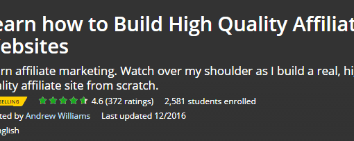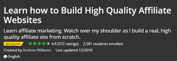 Udemy courses provide plenty of information to help students decide if a course will be of value to them. For example, on August 2, 2017, Andrew Williams’ Udemy course,“Learn how to Build High Quality Affiliate Websites “, showed the following description.